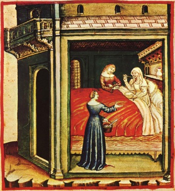 Taccuino sanitatis 4186, manoscritto e miniato del XIV sec.,